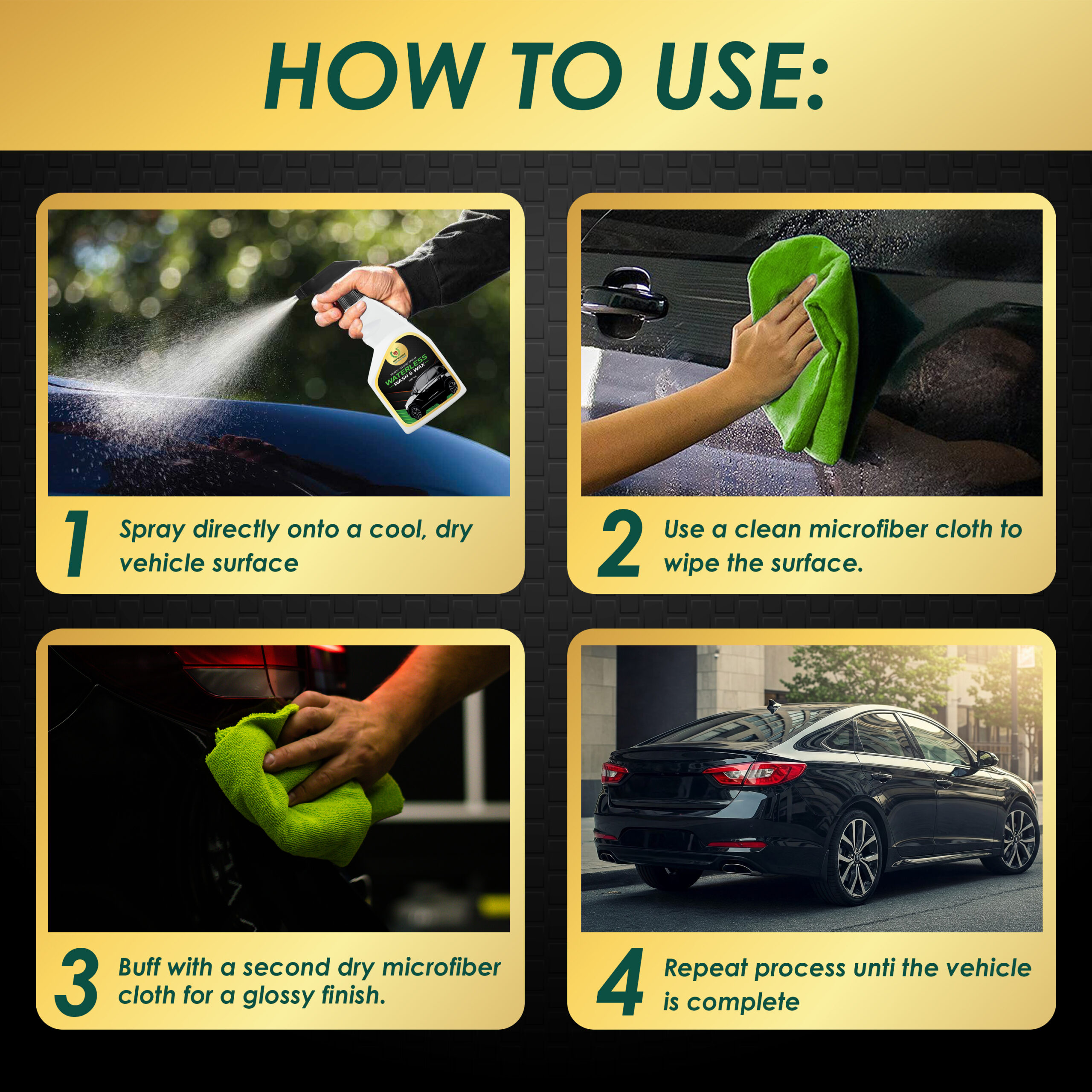 - Waterless Cleaning Made Easy: Effortlessly cleans your vehicle with no water required—just spray and wipe.