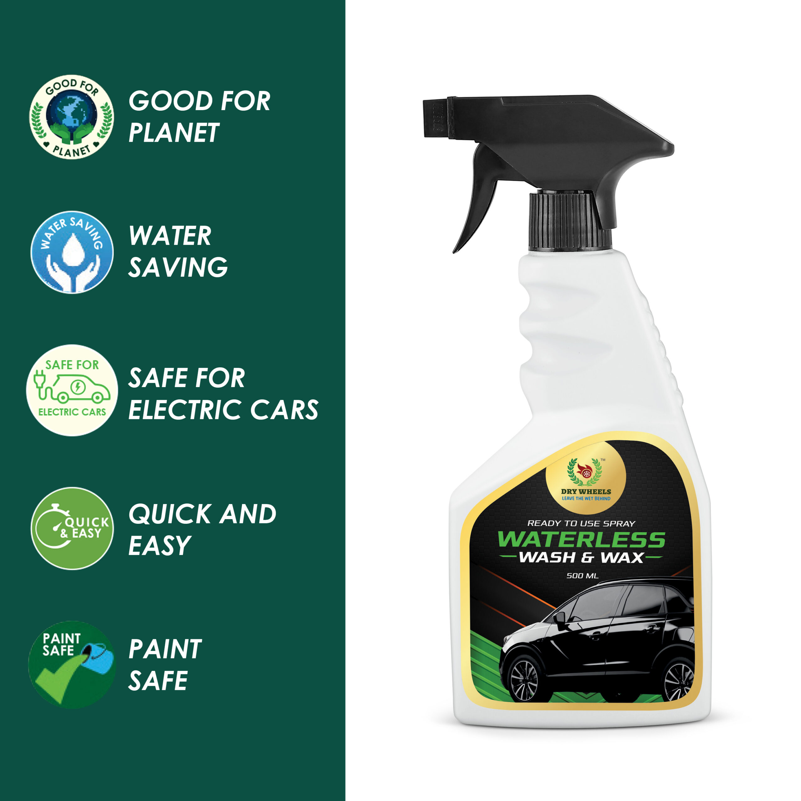 - Eco-Friendly: Saves water while being safe on paint, glass & chrome.